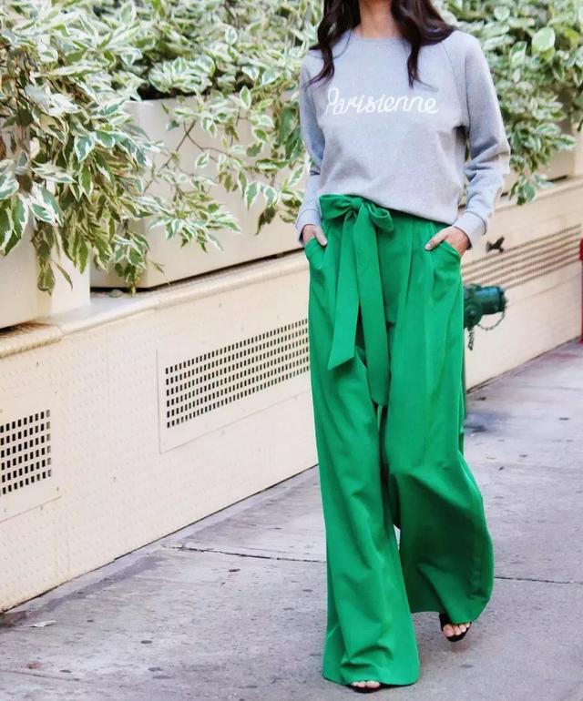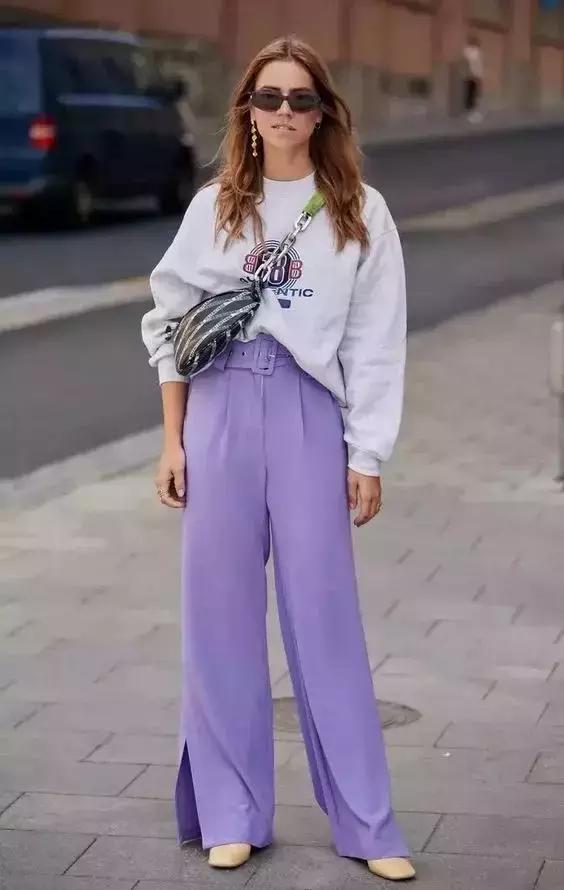 萬能的闊腿褲也少不了,搭配衛衣腿細腿長顯瀟灑。但要記得衛衣要短,才有短+長而顯高的功效。