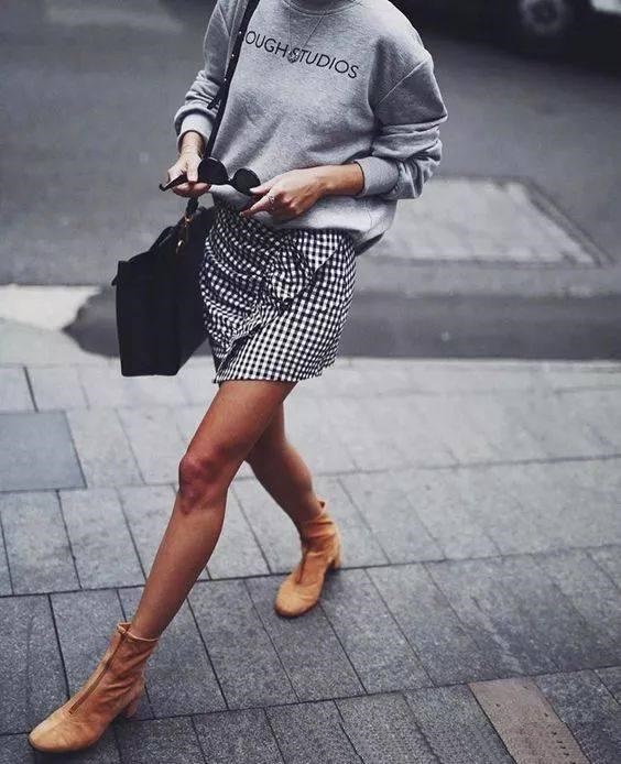 裙子長度可以在小腿中部到腳踝區間,怕冷的話,今年很流行裙子+靴子的組合,又好看又保暖!