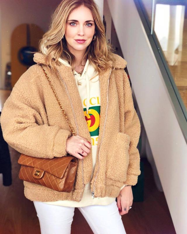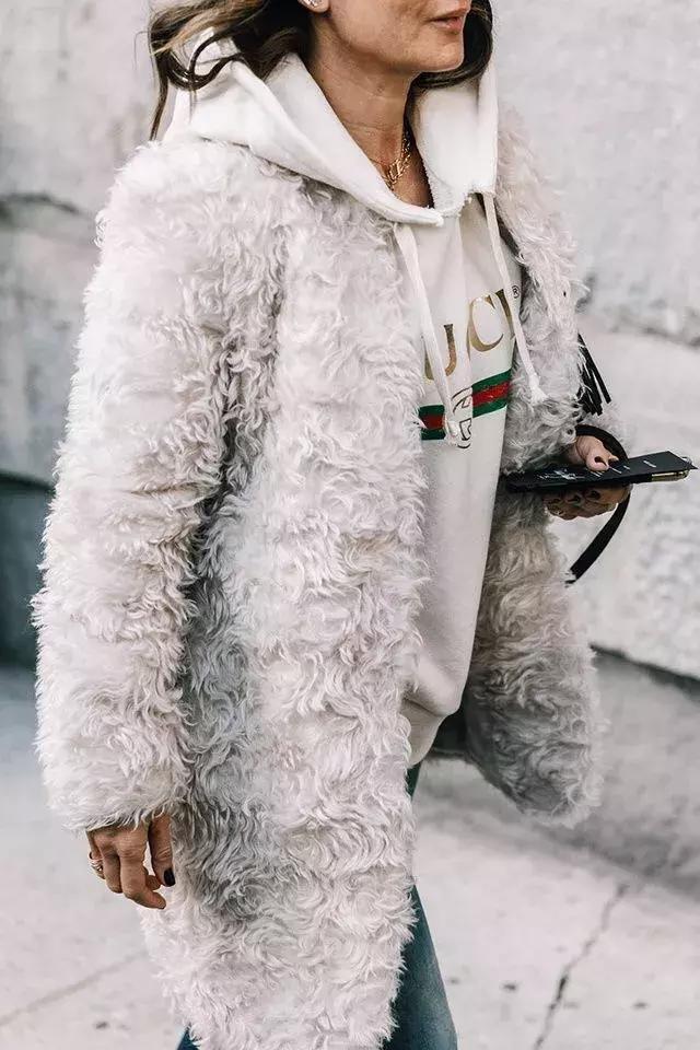 泰迪熊大衣類似皮草,給人感覺容易顯臃腫顯老氣,實在沒有比內搭衛衣更減齡的了~