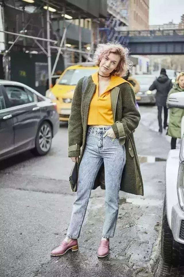 上下同色,即羽絨服和下裝同色,即使是艷麗的彩色,這麼穿也會很顯精緻。