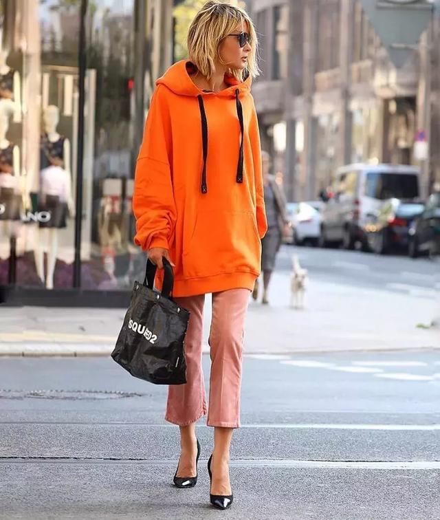 衛衣會營造一種寬鬆的廓形,搭配緊身褲也會有顯瘦的效果,不過是腿美星人專屬。