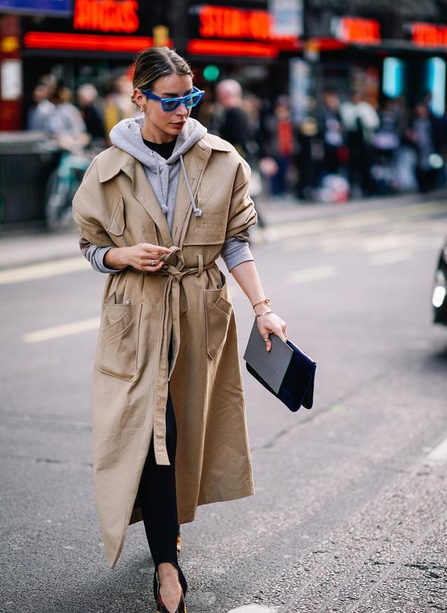 風衣也適合還沒有完全入冬的小伙伴,風衣和衛衣搭配時,可以先想好是系上腰帶還是敞口穿。