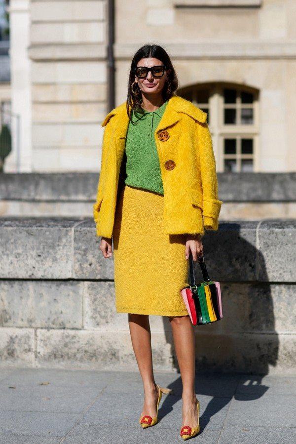 2019年漂亮吸睛的明媚黃與內搭白色系碰撞,明豔色的組合生機勃勃色,