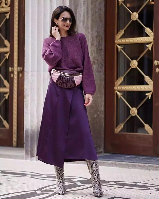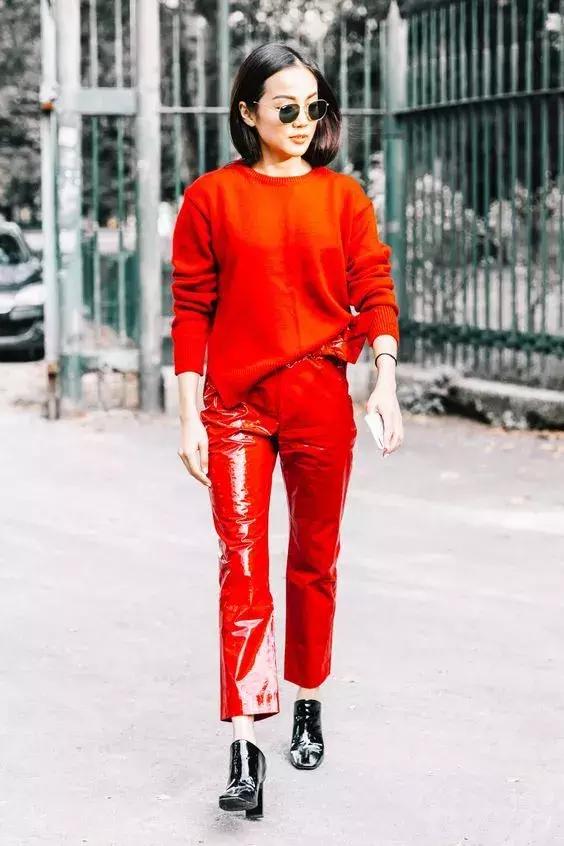 連貫式同色系穿法,總覺得缺乏新意。這時候學習上下色呼應原則,腰身、腿長比例秒秒鐘get。