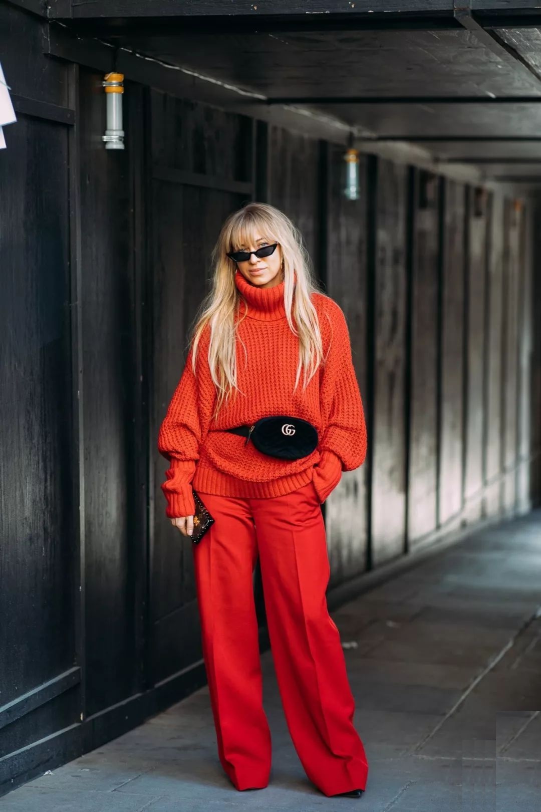 軟儒感的毛衣+火紅色>2的溫暖時髦造型,冬季周圍蕭條色立馬被比下去。