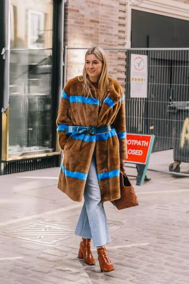 像這種皮毛拼接的款式,配色看上去很復古,但是穿上就是身材雷區!