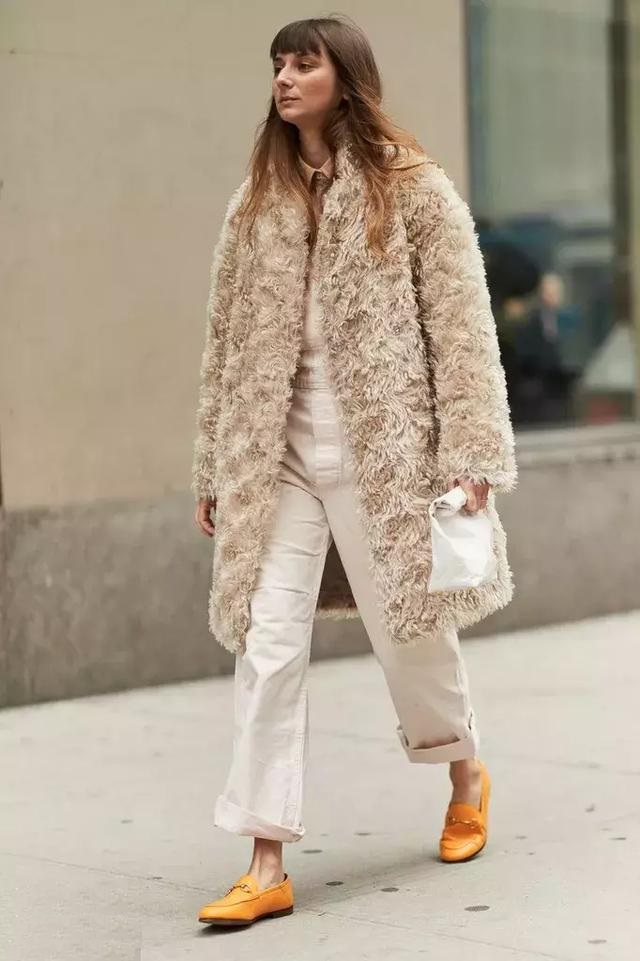 何況皮毛一體大衣和運動鞋的搭配,看起來就非常舒適,兼具質感和精緻感。