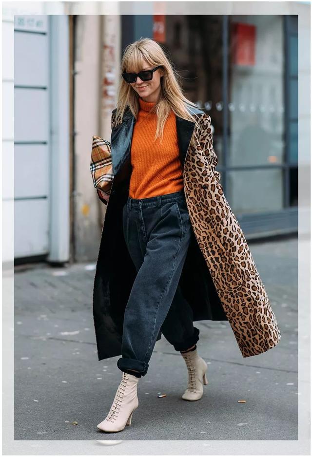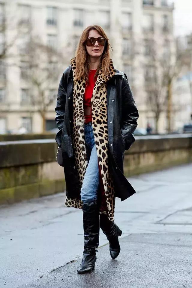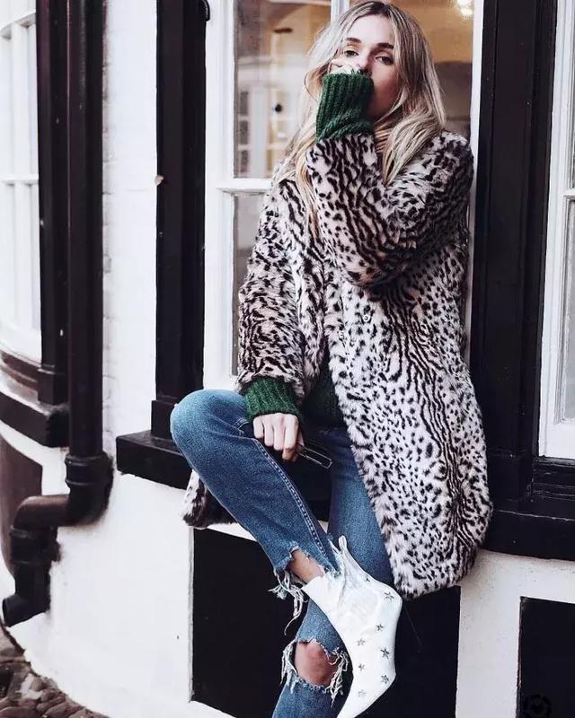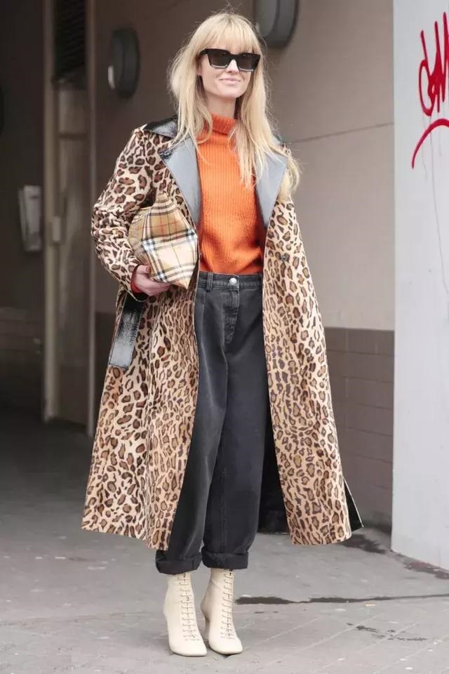 豹紋大衣外套到處可見,其紅火程度不一般啊。畢竟,簡簡單單一件豹紋大衣搞定全身Look,