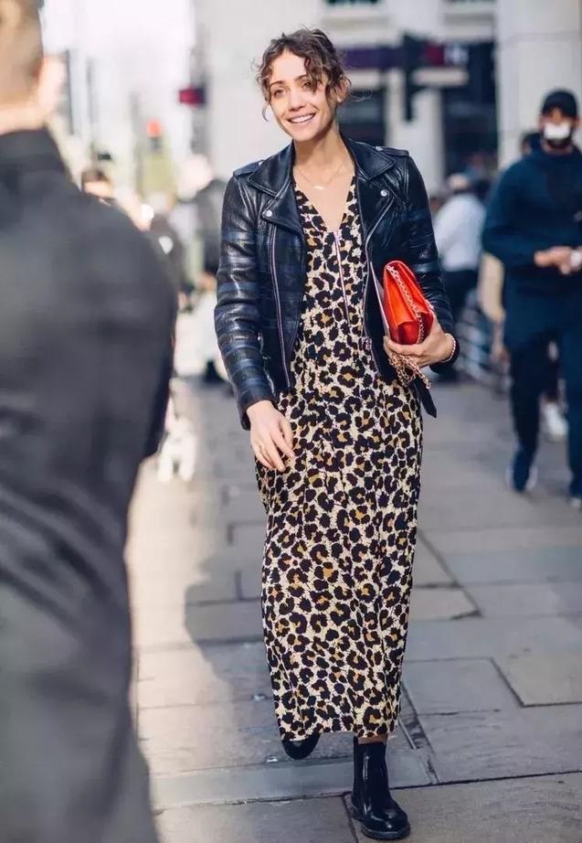 虎紋連衣裙是時髦精的心頭好了,搭配老爹鞋走街頭風。