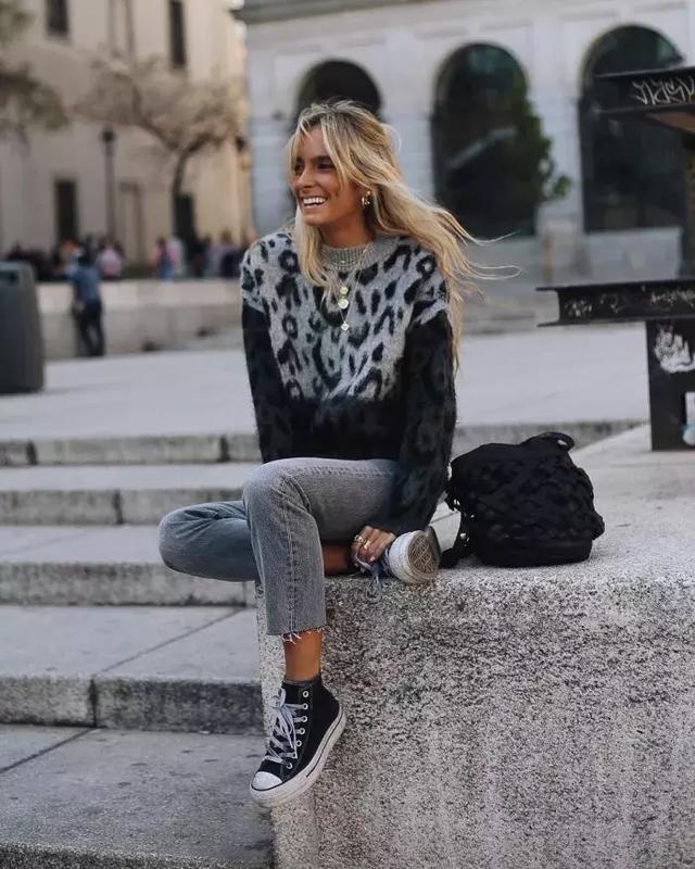毛衣柔軟的質地能給人一種慵懶散漫的easy chic ,而豹紋自帶焦點的特性又足夠搶眼~