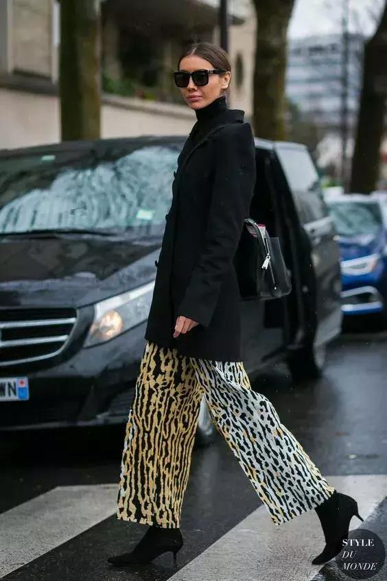 是可以試試豹紋褲裝,選擇豹紋圖案較小的九分褲裝,搭配老爹鞋和夾克是最chic不會錯的。