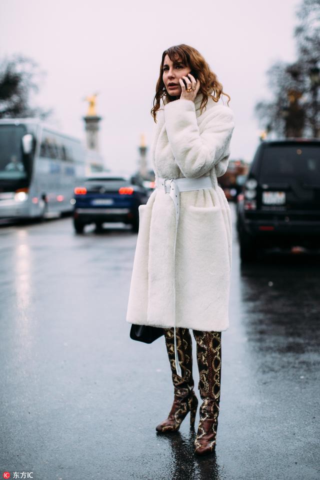 在蛇紋靴的點綴下,更為出挑。而且不挑人哦~