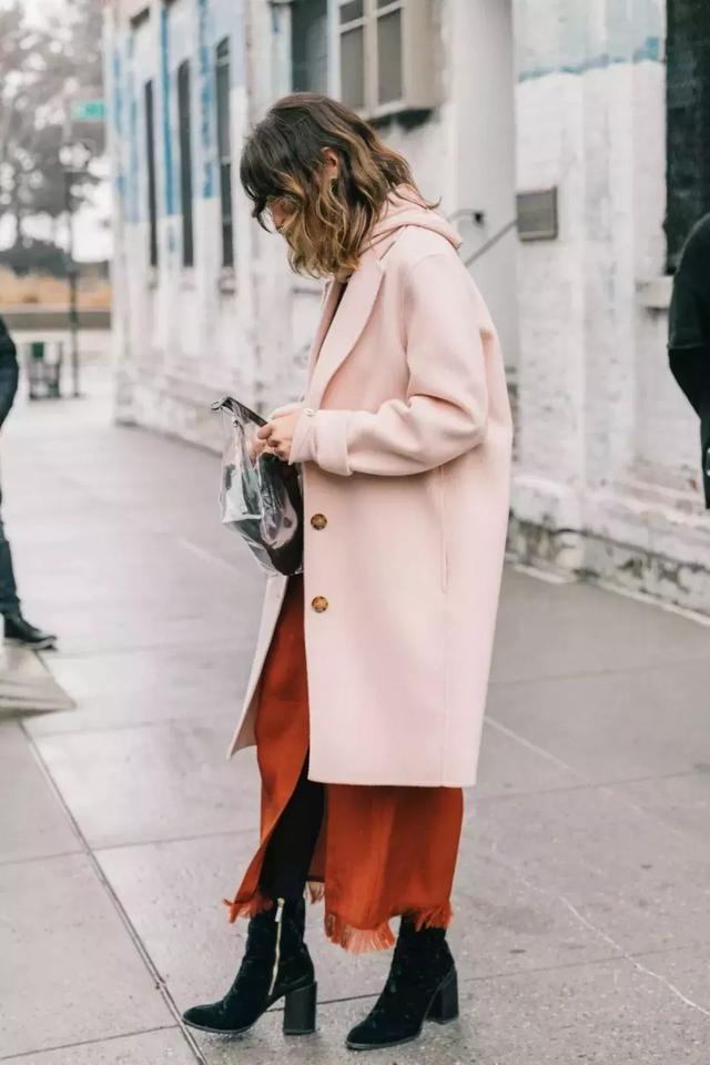 黃粉色不僅不顯黑反顯白,最適合打破冬季黑灰色的枯燥感。