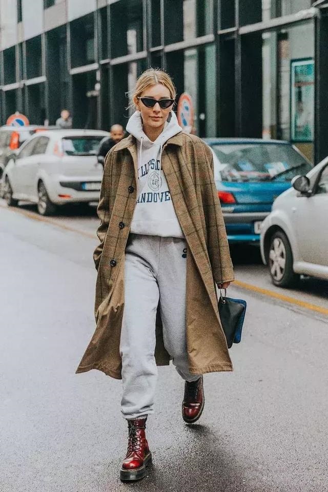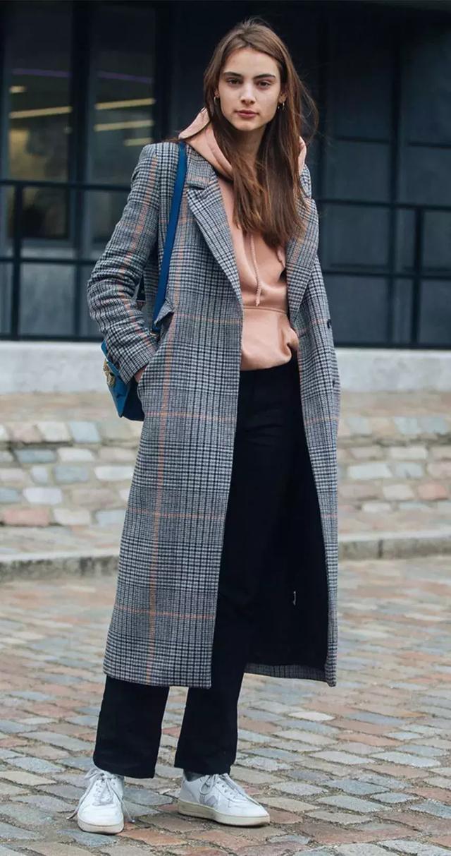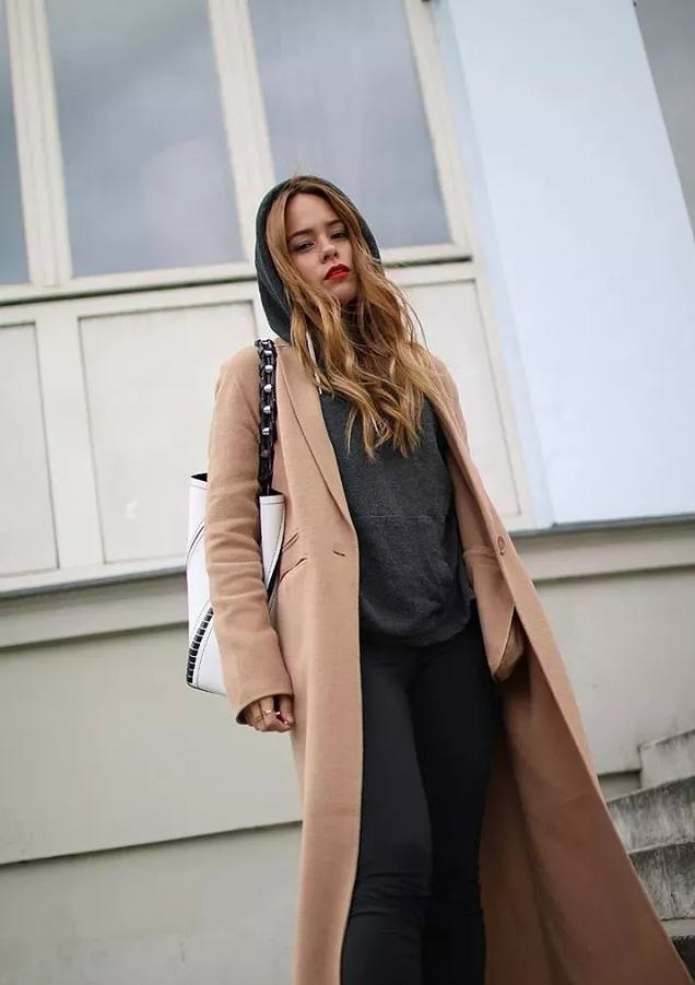 選擇膝蓋上下長度的大衣配衛衣,更好駕馭。