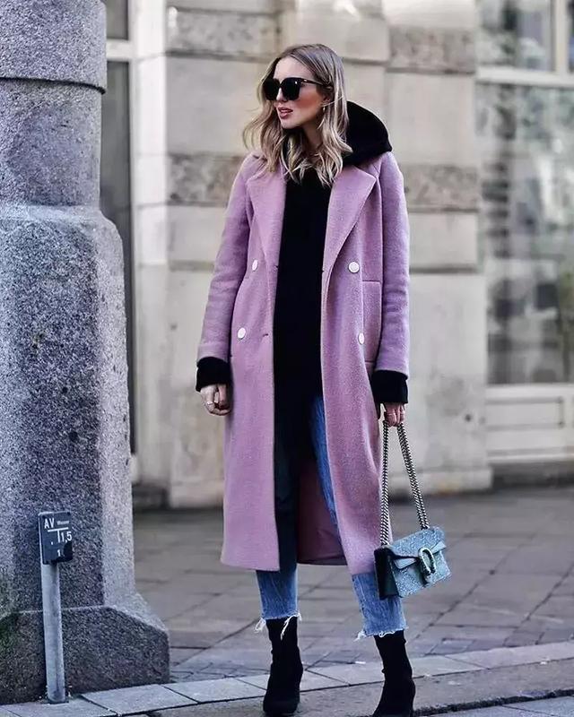 廓形直挺的呢子大衣是由羊毛絨混紡而成,獨特的保暖柔軟性成為弄潮兒冬季大衣出行必備。