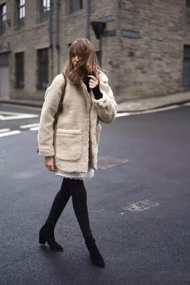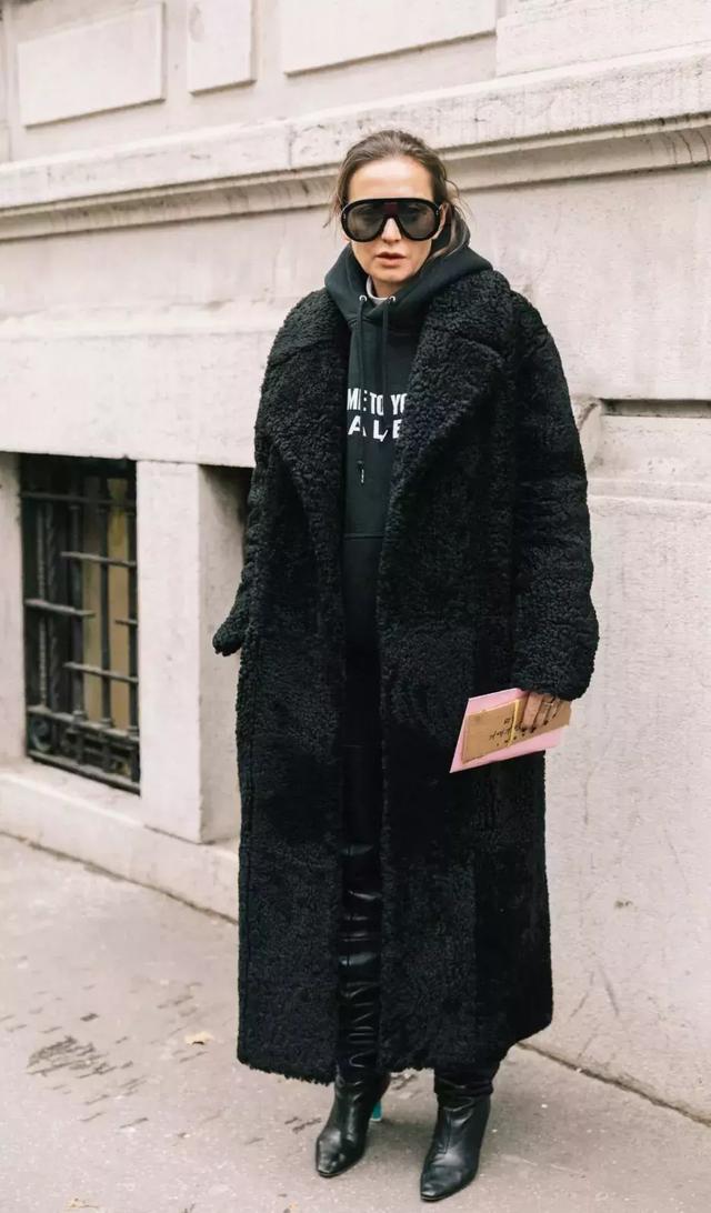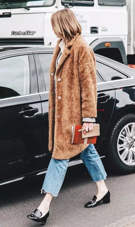 看了這麼多圖你們應該發現了,最常見也是最容易駕馭的毛毛外套是黑色和棕色。