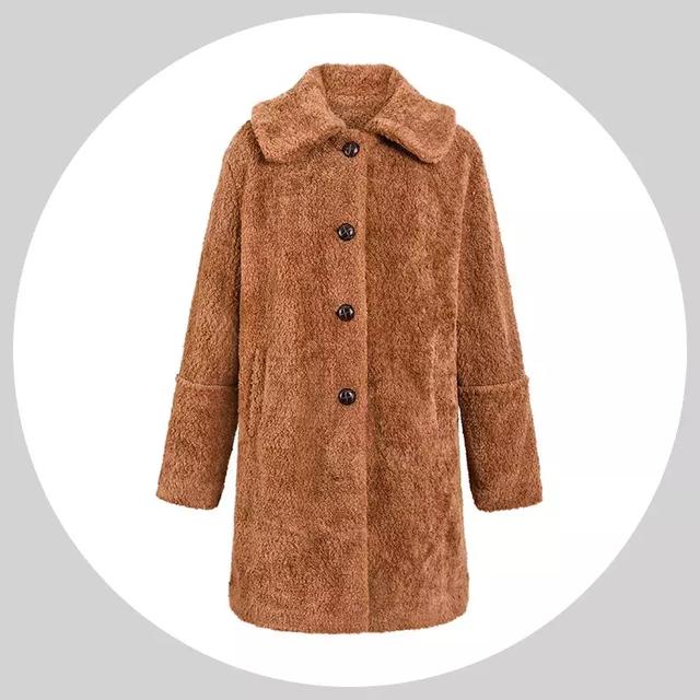 Topshop棕色毛毛外套,帶一點溫暖橘色調,官網參考價:589元。▼