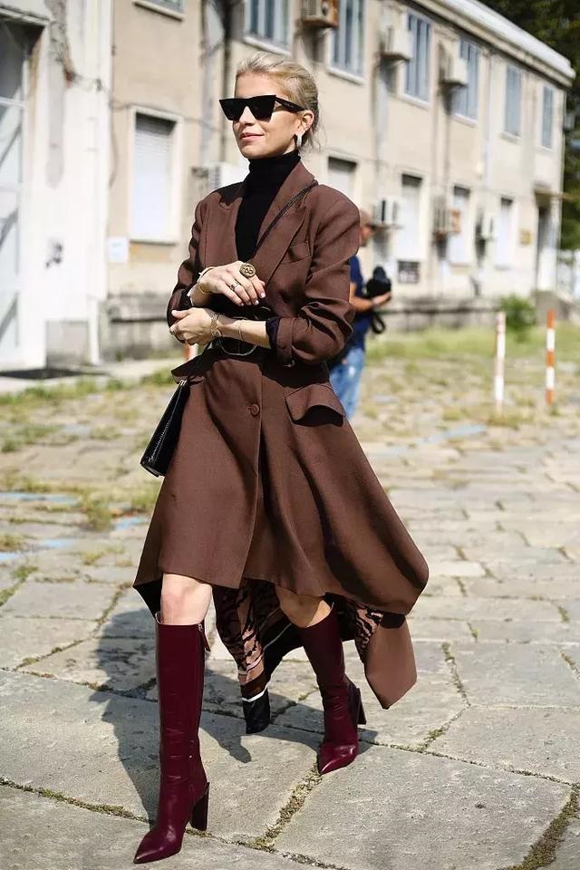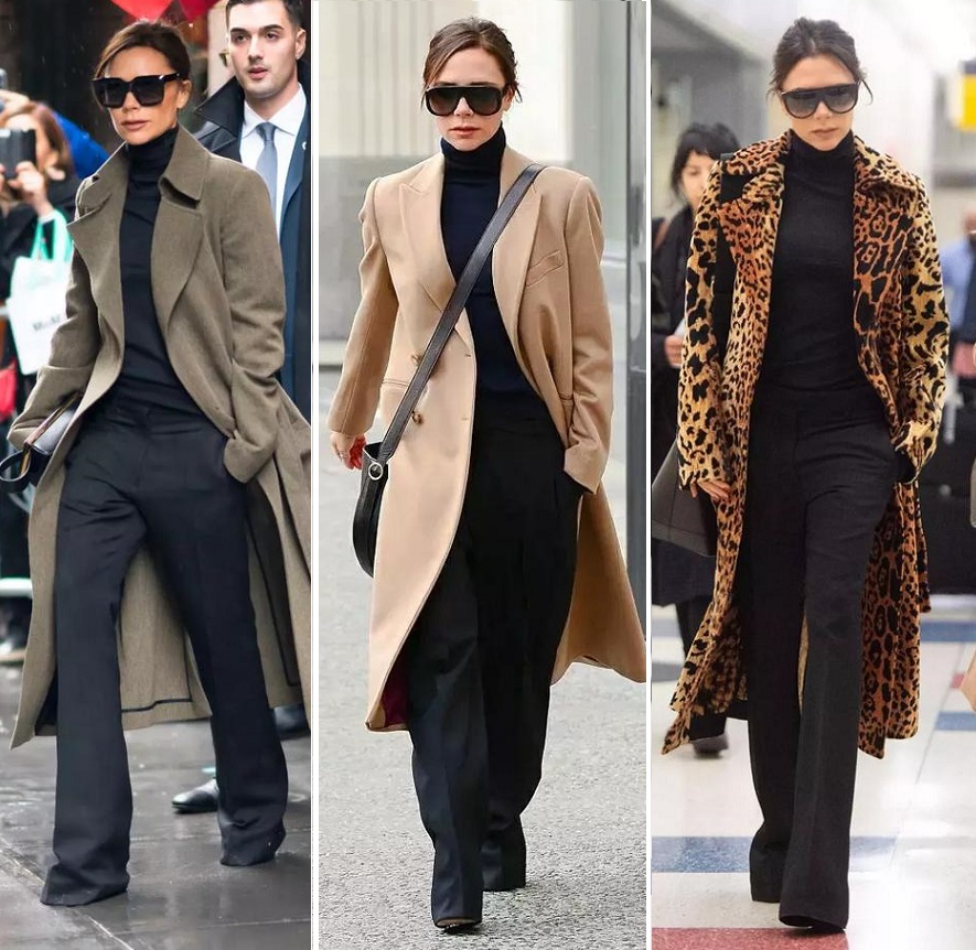 比如最常見的駝色大衣,加上黑色高領衫上就絕不出錯,非常得體,