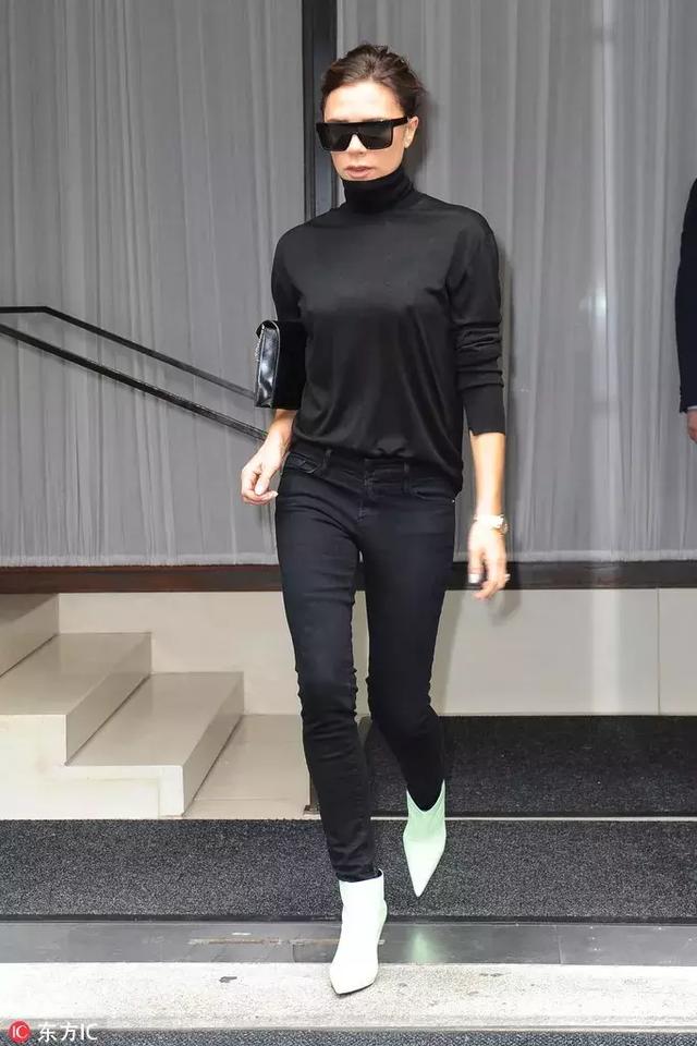 一件黑色高領衫既可以搭配闊腿褲和大衣,穿出知性的女人味。
