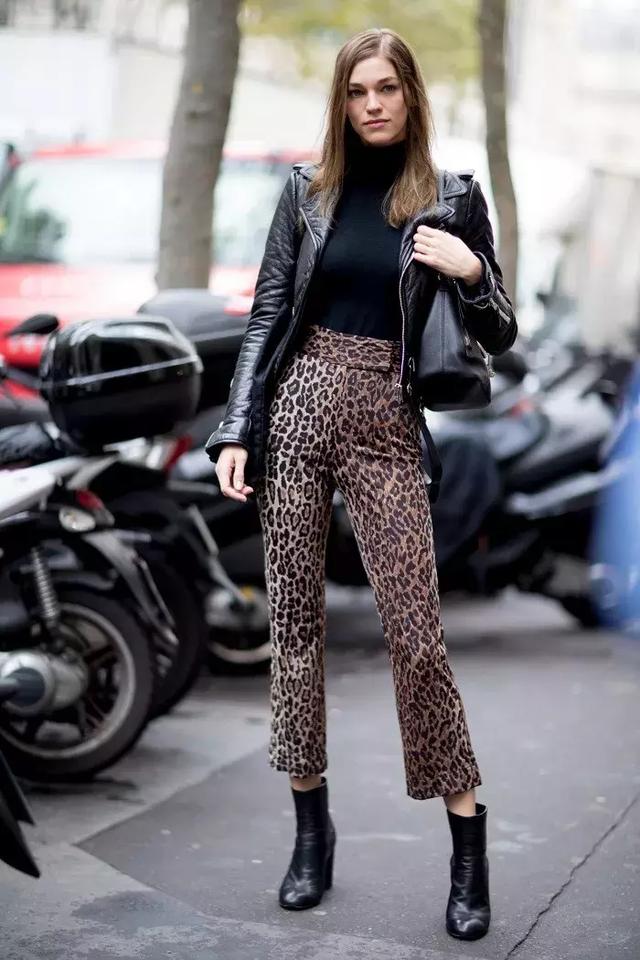 比如今年很流行的豹紋,就可以搭上一件黑色高領衫。
