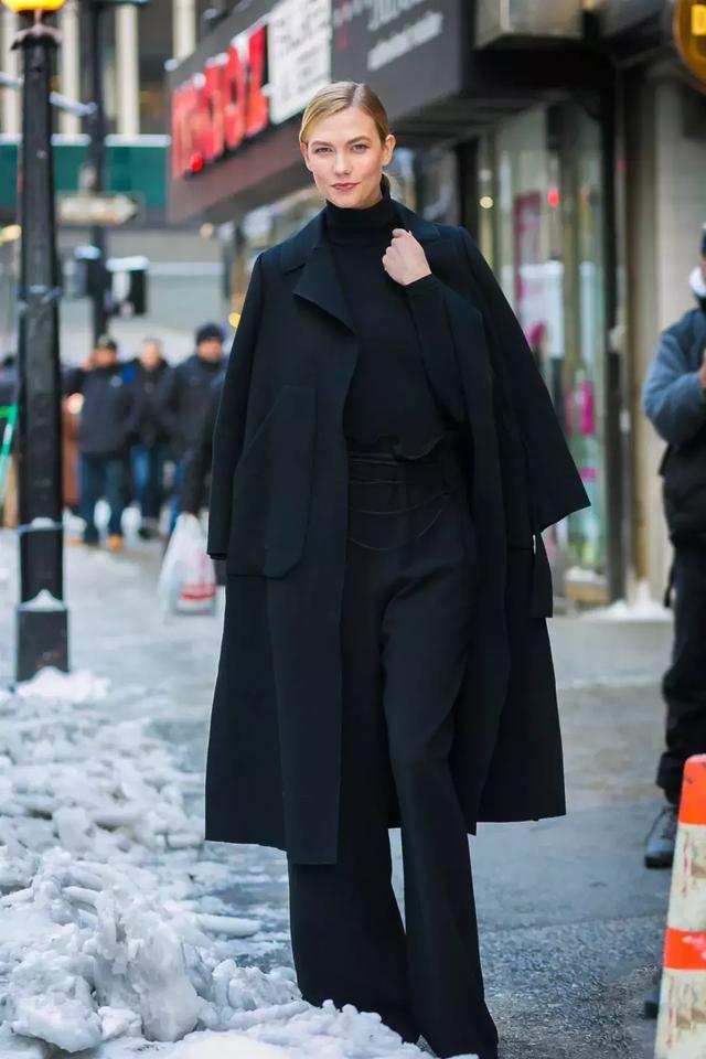 看看Karlie Kloss的各種黑色高領造型,算一算,這個穿著成本該有多划算呀。