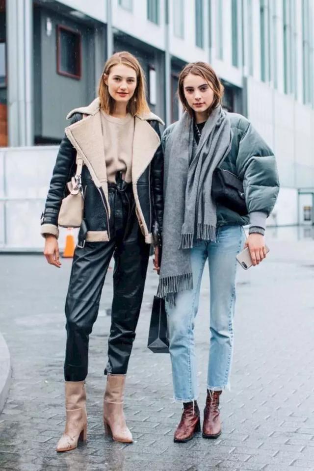 寒冷颼颼的冬日自然是少不了羽絨服的踪影,同樣,它與皮褲的組合也絲毫不會違和~