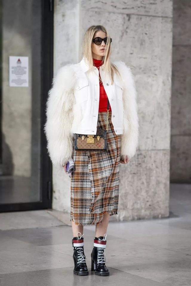 如果是淺色的羊羔毛,那就換成白色的馬丁靴就好,更加協調,甜中帶有一點中性感,非常高級。