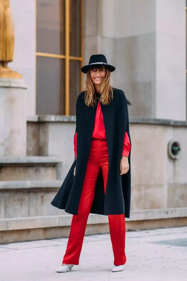 如果是比較方正的帽頂,更具攻性氣質。超模崔素拉用大紅唇搭配這樣的帽子,打造凜冽的冷艷感。注意帽子上的環扣裝飾,有心的人也可以舊帽改造,讓帽子更英氣。