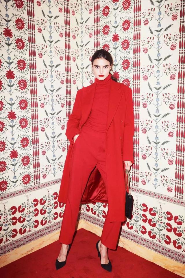 紅色的泰迪熊大衣溫暖十足,內搭同色系的高領,喜慶活力的一套LOOK哈~