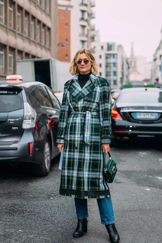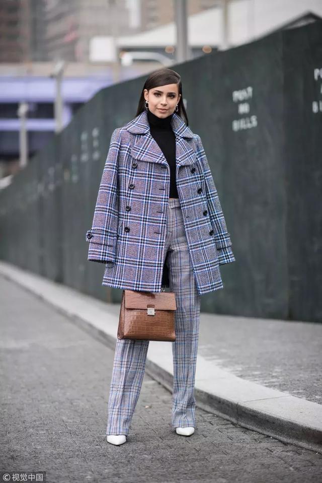 大格紋的大衣更加有現代感,搭配黑色高領衫既摩登又莊重。