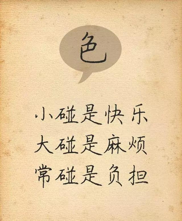 適當的飲酒對身體有易喝多了比毒藥還毒,色就是路邊的野花不能采,財正道來的錢不論大小都是該得的不能貪財好色,注意起居飲食健康長壽,睡按時睡覺早起早睡有個好身體,氣大傷身煩事想開,名不重要重要的是家和萬事興善良,捂人的一生很短暫遇事要想開放手。