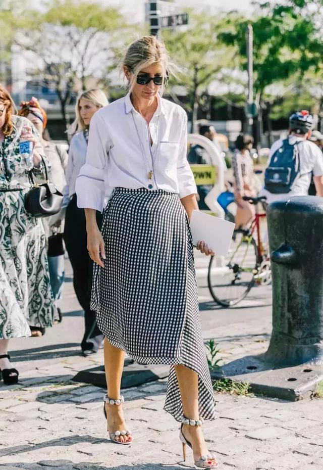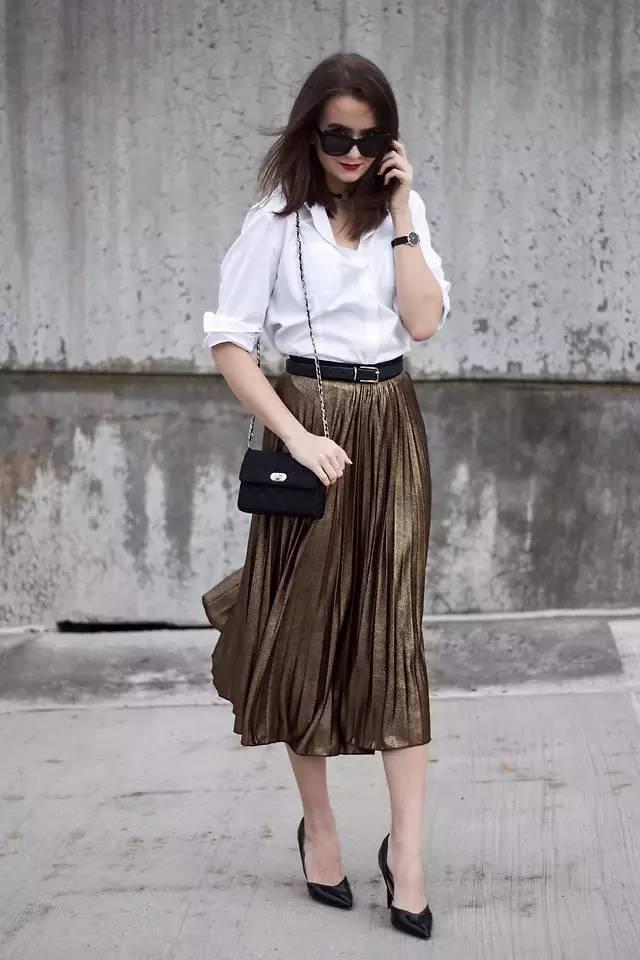 因為裙子的款式足夠吸睛,上衣選白襯衫就好啦!