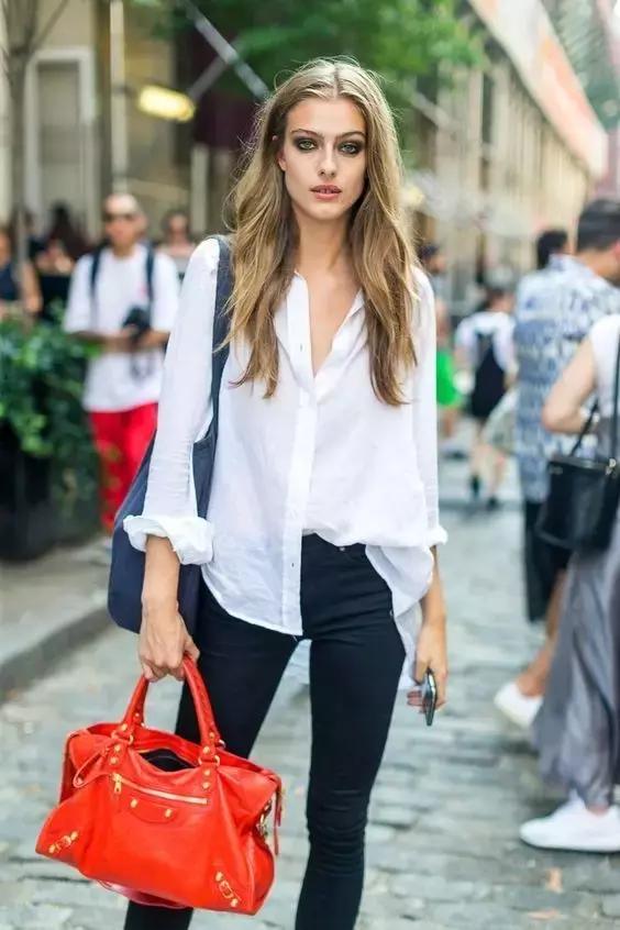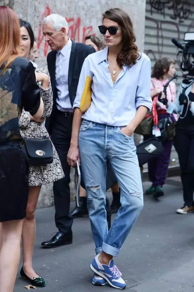 一般挑選襯衫,我們都會基礎款的白襯衫,只要搭配一條牛仔褲就十分出彩,幹練簡約。
