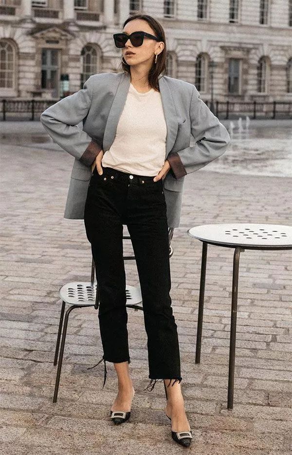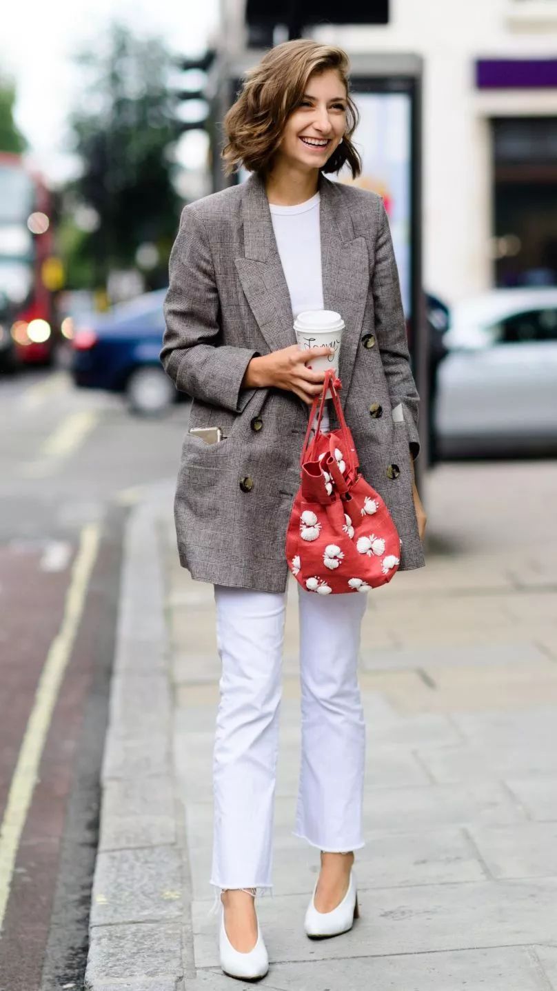 灰色西服是內斂低調風格的女生的最愛,無論是深灰亦或淺灰,都非常素雅有質感,可以讓你的混搭look看上去時髦又高級。