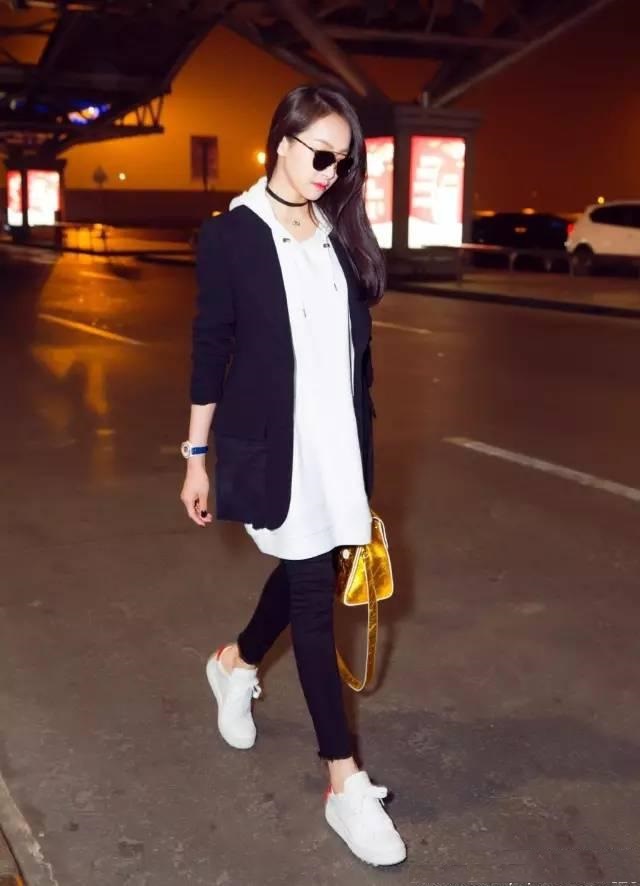 宋茜,黑色西裝內搭衛衣,黑色牛仔小腳褲與白色運動鞋!吸睛又青春無敵!