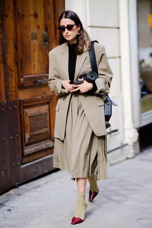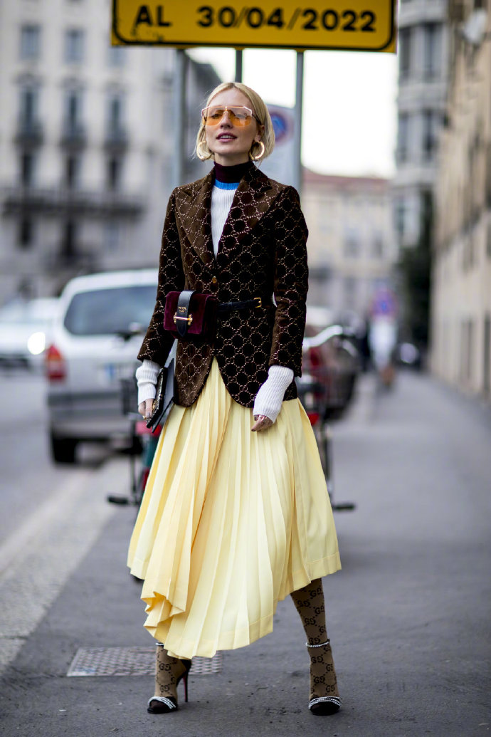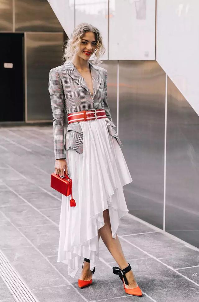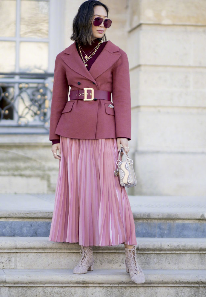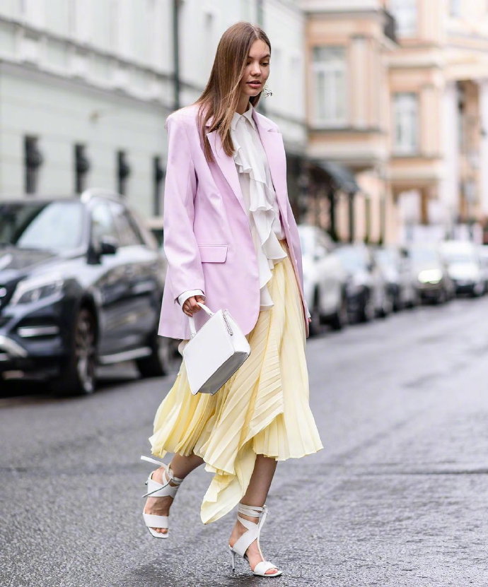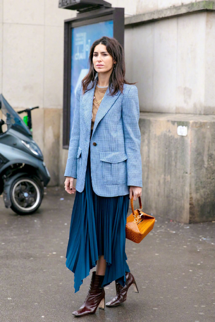 被一個穿百褶裙的女孩迷倒了,還有,西服外套搭配百褶裙的例子也特別的多,