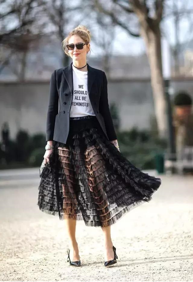 還有衣櫥中短款的仙女裙,搭配西服還能穿出一種幹練氣質,換個口味穿也會讓你好評不斷。