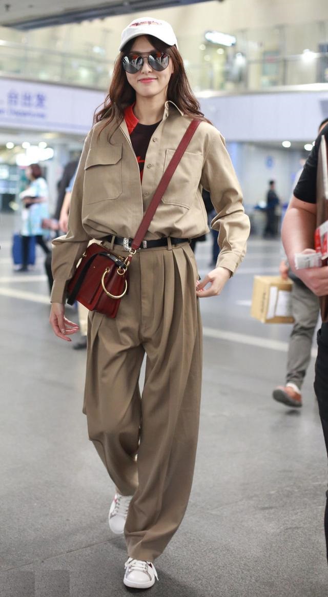 素雅的卡其色襯衫很適合這樣的同色系搭配,舉手抬足間都是自信又優雅的感覺。