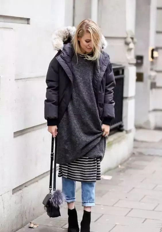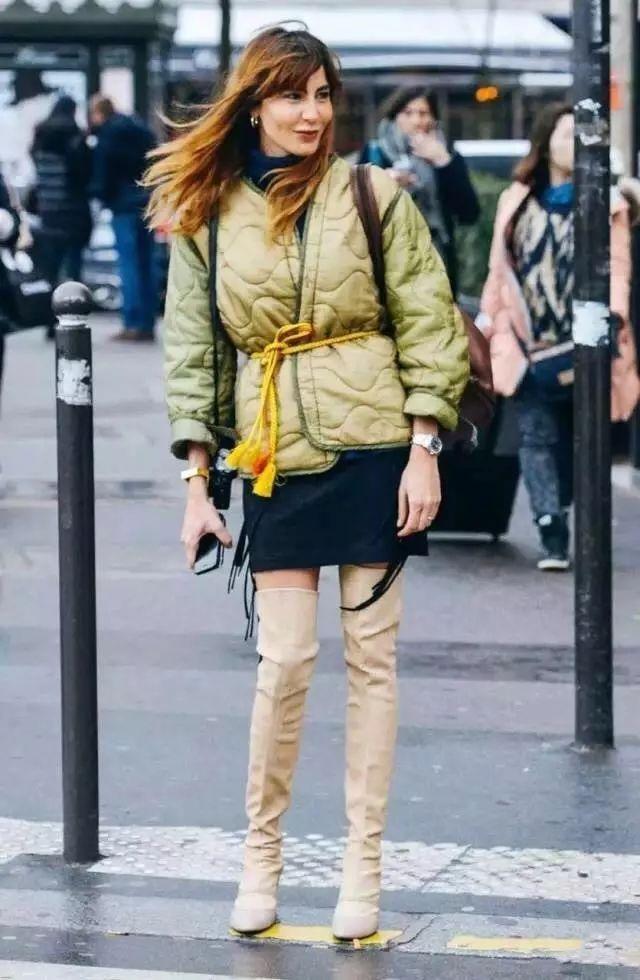 羽絨服+長靴最常見的搭配方式是,羽絨服和長靴的王牌組合,看起來隨意又瀟灑
