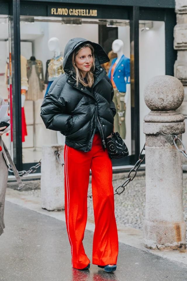短款還可以用上松下垂的搭配法,和闊腿褲、喇叭褲組CP,想要休閒感的可以把衣櫃的運動褲拎出來。
