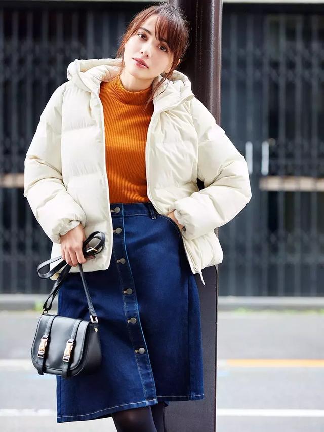 搭配羽絨服視覺上能減少羽絨膨脹感