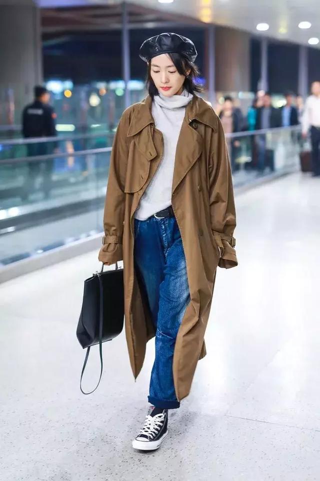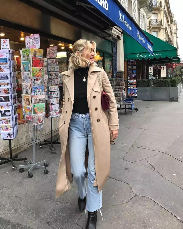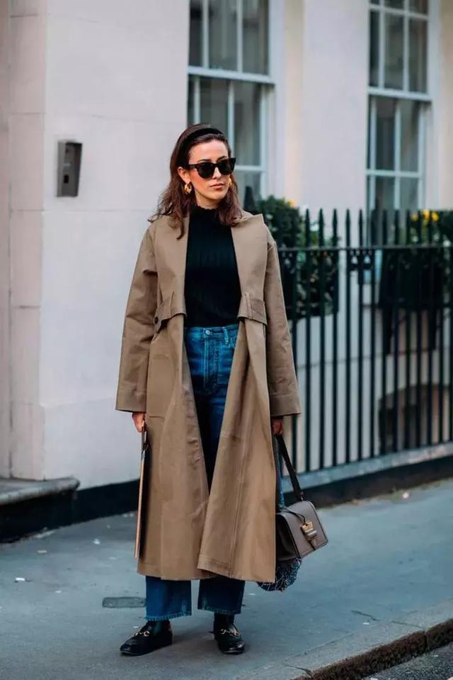 高領和襯衫的同色系疊加,因為腰帶的加持而顯得層次有序,還能在內部提亮風衣的吸睛度。