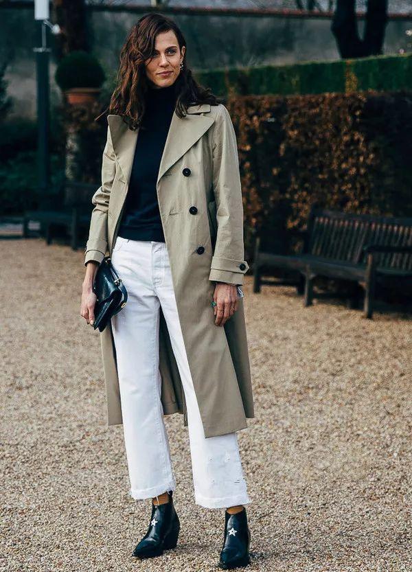 雅白色高領,搭配女人味十足的開衫毛衣,跟駝色或者大地色系的風衣匹配,溫柔優雅又起範。