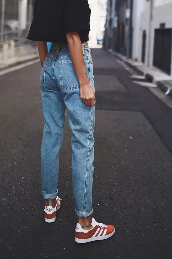 九分磨邊牛仔褲與運動鞋是天作之合,最能穿出隨性灑脫的時髦範兒。