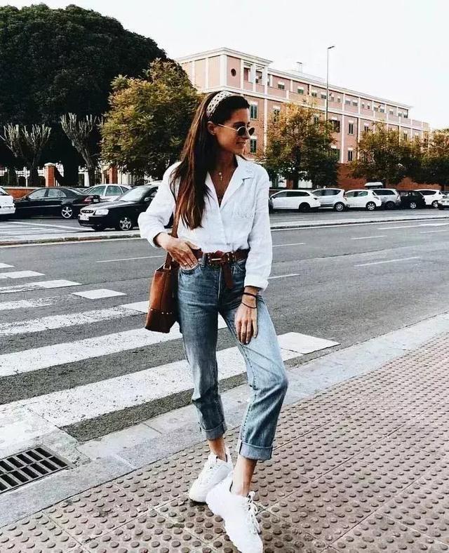 入秋之後是最合適穿襯衫的時節。九分直筒牛仔褲+運動鞋可以削弱白襯衫慣有的職場氣質,簡約隨性亦不失格調。