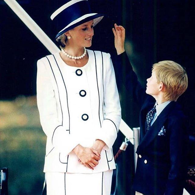 1992年剛參加完一場王室婚禮的戴安娜王妃與小哈里王子手牽手走在溫莎城堡,綠色的整體造型讓人眼前一亮。不過就在這一年,戴安娜王妃和查爾斯王子開始了正式分居,不知道當時頭戴綠帽但笑容燦爛的她,有沒有想到令人唏噓的這一天呢?
