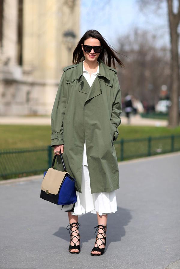 買軍綠色風衣時,最好不要選偏黃色或偏暗的,對膚色要求會更高。