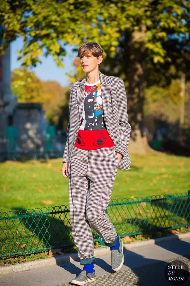 略微修身的西裝外套搭配印花T卹,削弱了修身西裝帶來的嚴肅,反而增添了街頭感。