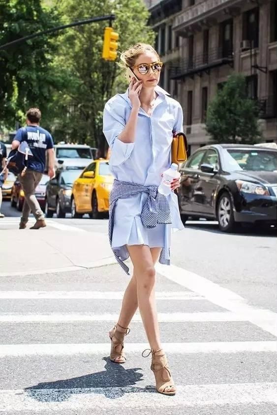 很多姑娘應該都有男友款長襯衣的單品,也可以像奧利維亞小姐一樣,直接當裙子來穿,