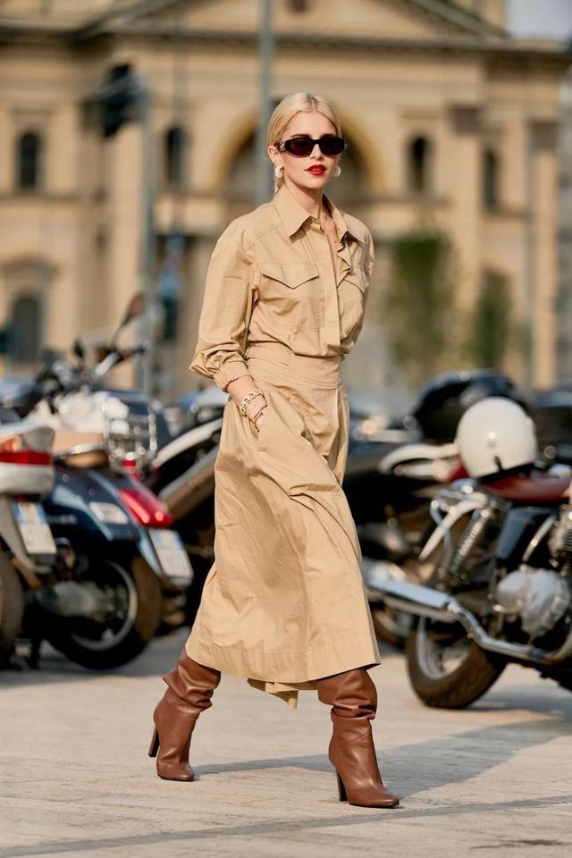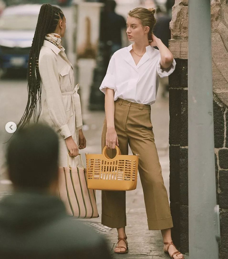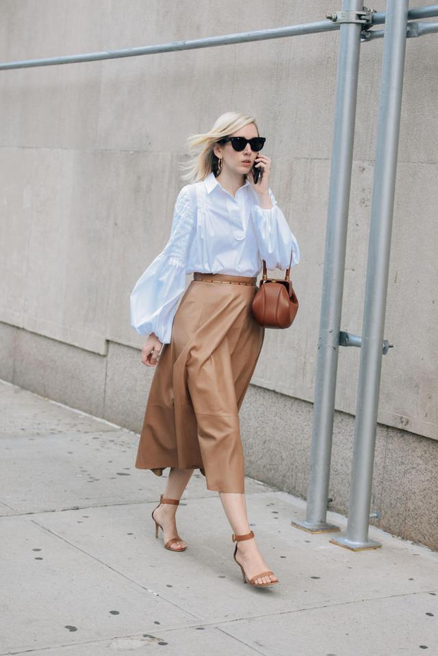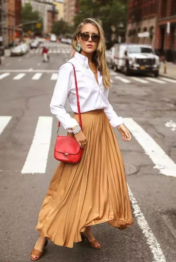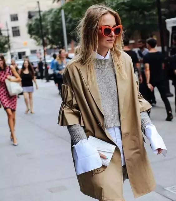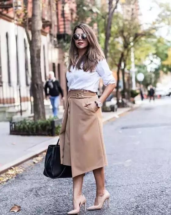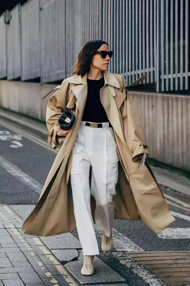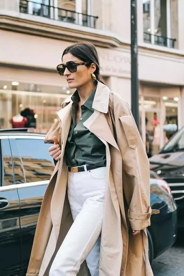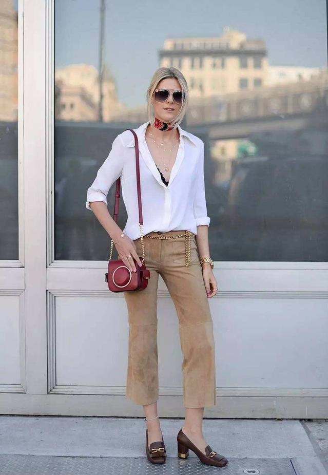 特別是輪廓感很明顯的白襯衫,很有型,搭配深駝色褲子,不乏雅緻襯托。